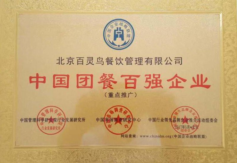 北京百靈鳥餐飲管理有限公司榮譽資質證書展示
